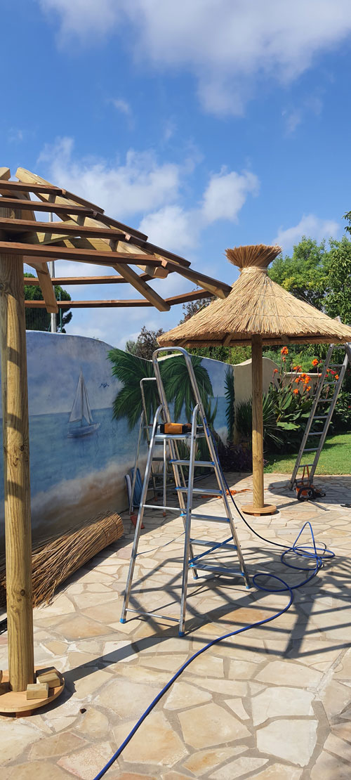 - Remplacement de la paille ou des roseaux afin de retrouver une couverture dense, homogène et efficace